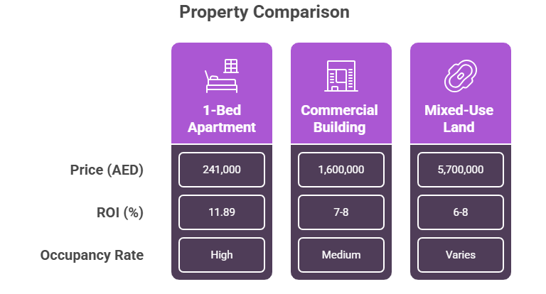 Apartments average AED 241,000, commercial AED 1.5-1.7 million.